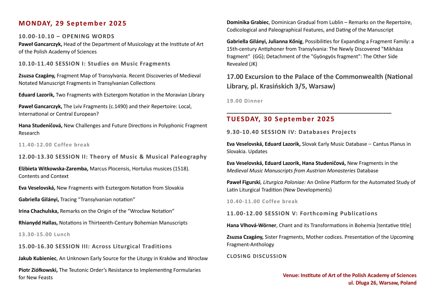 Konferencja: The Early Music in Central Europe. Collaborated Research, Migrating Sources, Transregional Connections